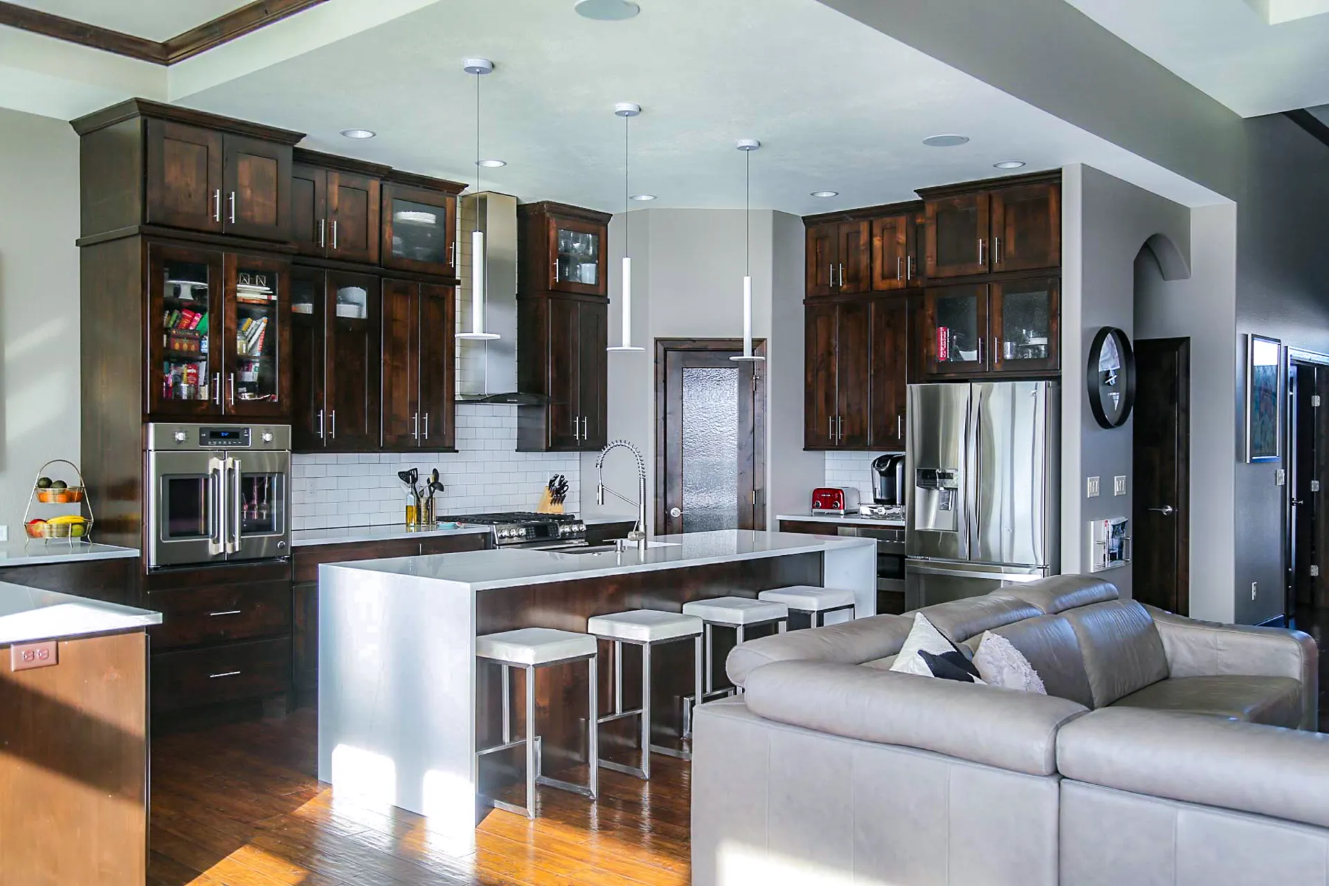 This modern home is built on a little over 3 acres of land that overlooks Lake Alvin. The exterior has a clean geometric design with large angled windows and a mix of flat and angled roof lines. The natural Cedar siding, as well as the painted siding, accentuate the geometric features on the exterior. Entering through the Mahogany Pivot Front Door leads you into a spacious herringbone tiled foyer. The open floor plan seamlessly connects the great room, kitchen, and dining room. The geometric details continue throughout these spaces with the angled windows and kitchen soffit. The kitchen features a large island and a hidden walk-in pantry that has a full fridge and ice maker. The great room has a custom concrete fireplace surround and tall vaulted ceilings. The primary bedroom offers a breathtaking view and features a custom double-entrance shower that can be accessed from both his and her bathrooms. Her bathroom has a freestanding tub and access to a large walk-in closet. Also, on the main level, there is a mudroom with a dog wash, powder bathroom, 2 guest suites, and a spacious home gym with a built-in water fountain. This home also features a unique loft with two home offices, one overlooking the great room, and a half bath.