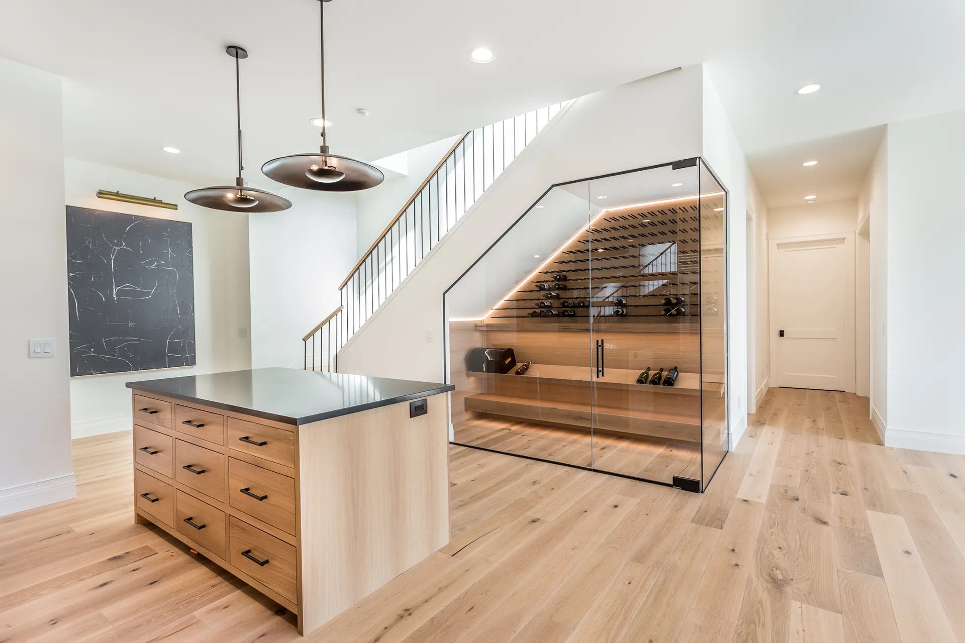 The lower level is an entertainer’s dream, complete with a large wet bar and a stunning wine cellar, perfect for hosting gatherings. Additionally, this level includes a guest bedroom, a spacious recreation room, and a fully equipped home gym, catering to both leisure and fitness needs.